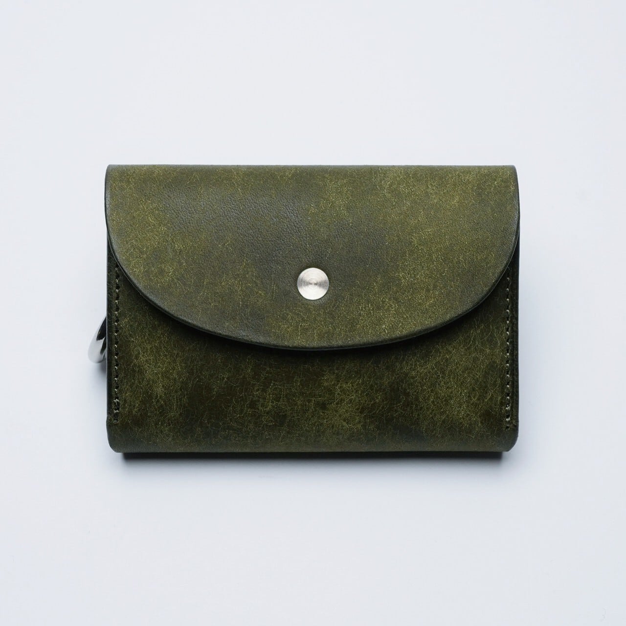 フラットなスナップボタンのモダンな印象と、ラウンドフラップのクラシックな印象とを折衷したデザインです。