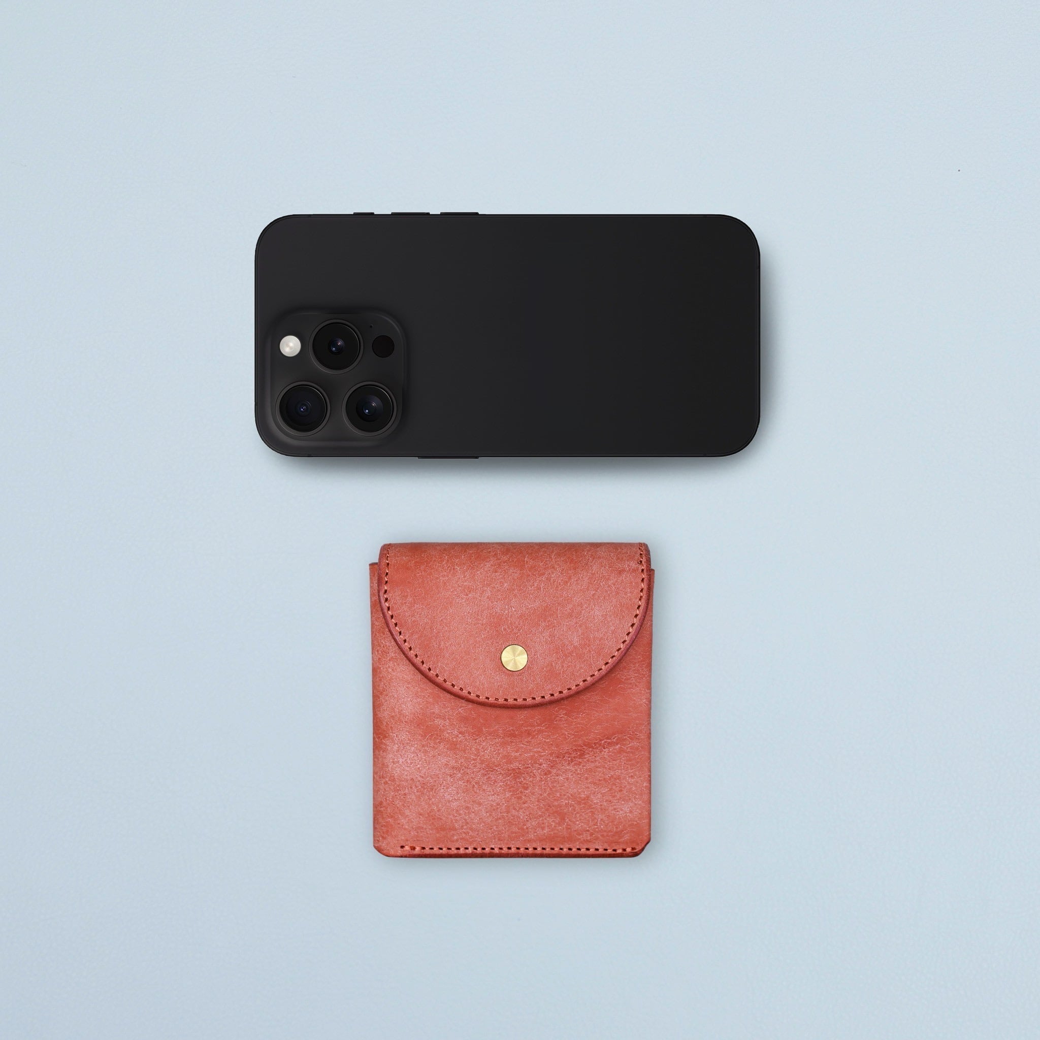 より厚みを抑えてスリムに仕上げるため、フラットな真鍮スナップボタンに変更。